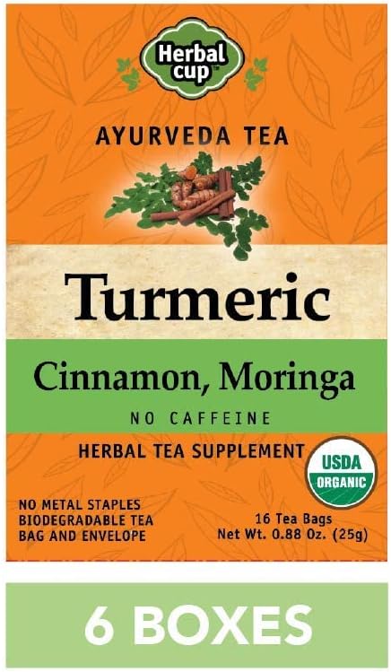 Herbal Cup Ayurveda Turmeric Tea, Organic Cinnamon Moringa, No Caffeine Herbal Supplement