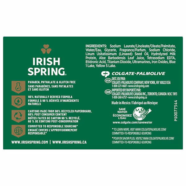 • Versatile Use: Irish Spring bar soap has a sudsy lather and can be used as a hand soap or a face wash
