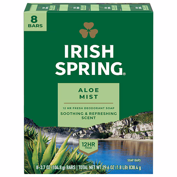 Count on Irish Spring Aloe Mist Bar Soap to leave your skin feeling clean. Our deodorant bar soap for men is made with a 98% naturally derived formula that keeps you fresh for 12 hours and is suitable for all skin types. For deeply moisturized skin, Irish Spring Aloe Mist Bar Soap helps attract and lock in moisture. Our soap bar can be used as a hand soap or face wash. This bar soap is suitable for all skin types, including normal, oily, and dry skin, ensuring a gentle yet effective cleanse. It is also paraben, phthalate, and gluten free. Add some adventure to your everyday life with the entire Irish Spring line of body washes and bar soaps for men.