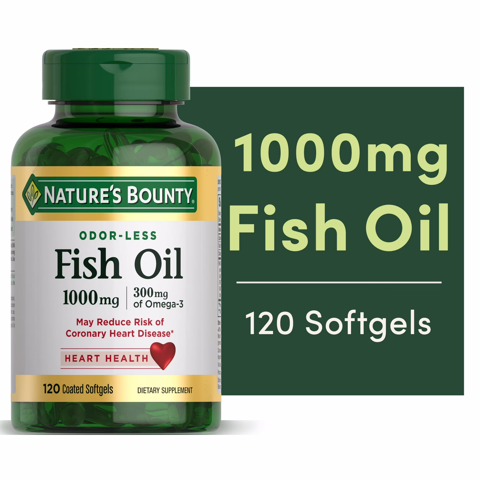 • Nature’s Bounty Fish Oil With Omega 3 Softgels, 1000 Mg, 120 Ct
